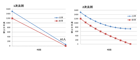 ・1次法則の場合、兵力も重要だが武器性能も重要